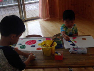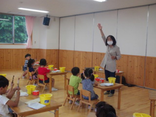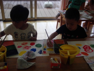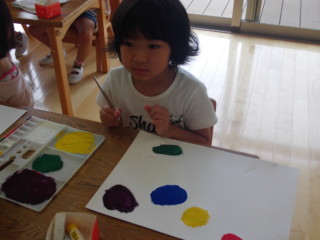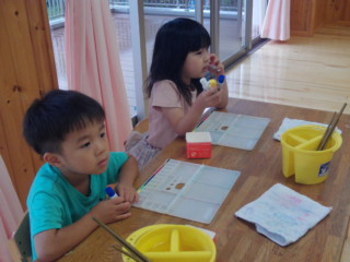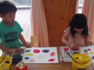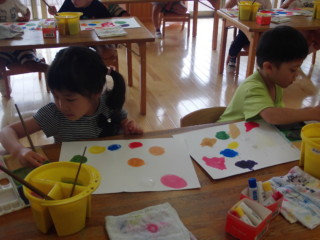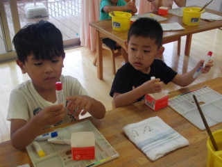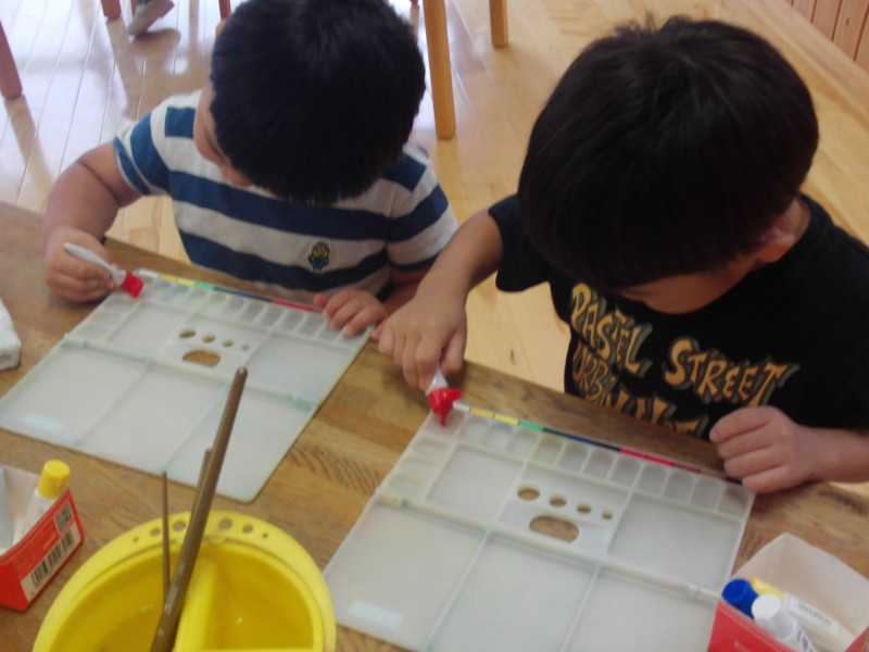 筆を使って色作り、その後は画用紙に描いてみました。 みんなとても楽しそうでしたよ!!